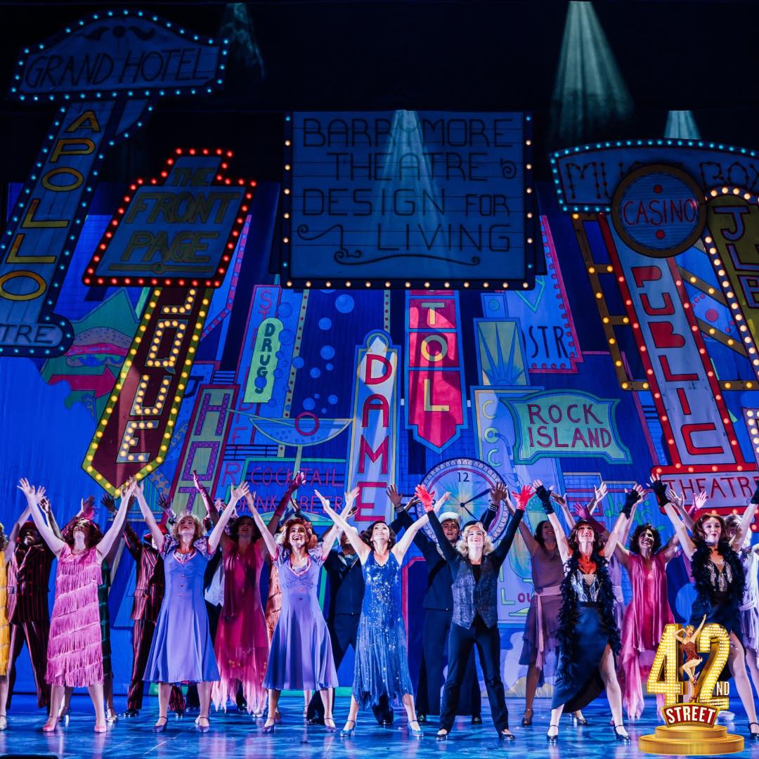 42nd Street follows the story of a new show opening in America. As the show opens you are taken from auditions through to opening night whilst you follow the story of our young, fresh faced newcomer Peggy Sawyer. As Peggy tries to navigate her way around this cut-throat world of showbiz, she is introduced to helpful chorus girls, suave tenors, dismissive directors, and a veteran leading lady who frankly is passing her sell-by date. Throughout the show you see how difficult it can be to break it into the industry, whilst being given iconic songs such as "We're in the Money" and "Lullaby of Broadway". With huge costumes, and even bigger set pieces, this show is a show stopper!